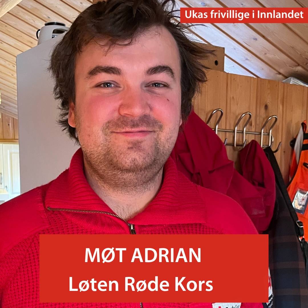 Adrian meldte seg inn i Løten Røde Kors da han var 17 år. Bakgrunnen var at han ville lære å hjelpe andre, både i privatlivet og etter hvert som hjelpekorpser. Det gode miljøet og profesjonaliseringen av hjelpekorpset er noe av grunnen til at han velger å bruke tiden sin på Røde Kors.